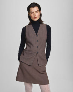 The waistcoat offers a clean and timeless silhouette, crafted from a structured fabric with a tailored finish. It features a deep V-neckline, button closure, and a flattering, fitted shape. Perfect for layering over a crisp shirt or styling solo for a more contemporary look.